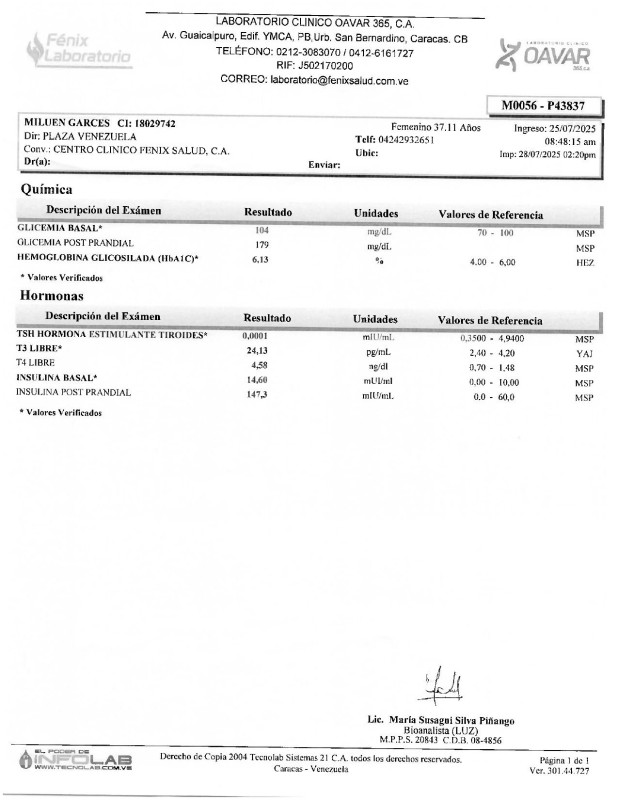 In November, I decided to make an appointment to see an endocrinologist because I was not feeling well, I was sweating frequently and it was no longer normal to continue with my weight gain, I underwent the tests needed for the appointment plus a thyroid echo.