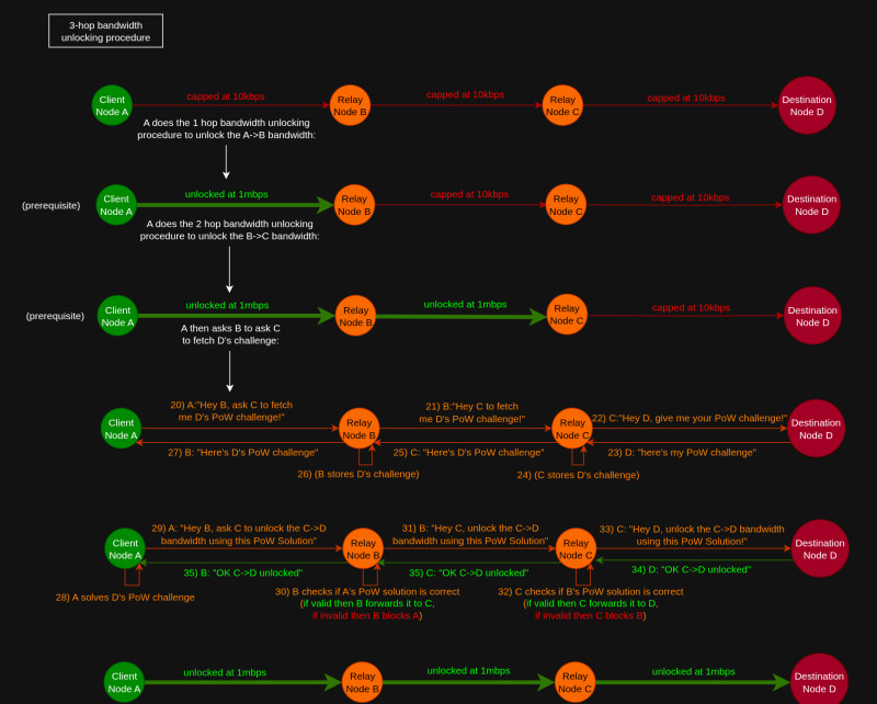 Currently the project is still in it's planning and brainstorming phase. So right now we're offering payments for whoever can help us write the proof of concepts for the key features of the network in Rust.